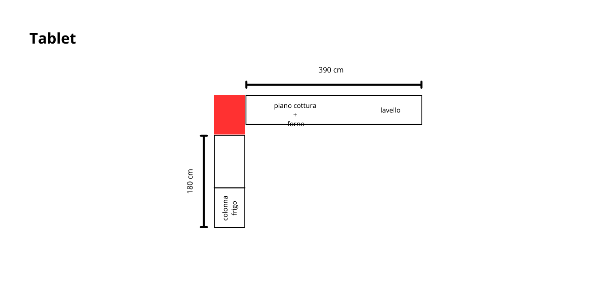 Il progetto cucina Tablet propone una soluzione lineare con una parete colonne attrezzata e top laminato Zinco Metallo.